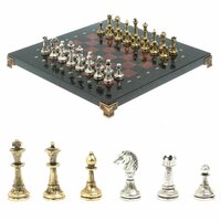 Шахматы с металлическими фигурами "Стаунтон" доска 28х28 см лемезит размером доска 28х28х2,5 см, клетка 2,5х2,5 см, высота фигур: пешка 2,7 см, король 4,7 см и весом 6300 г.