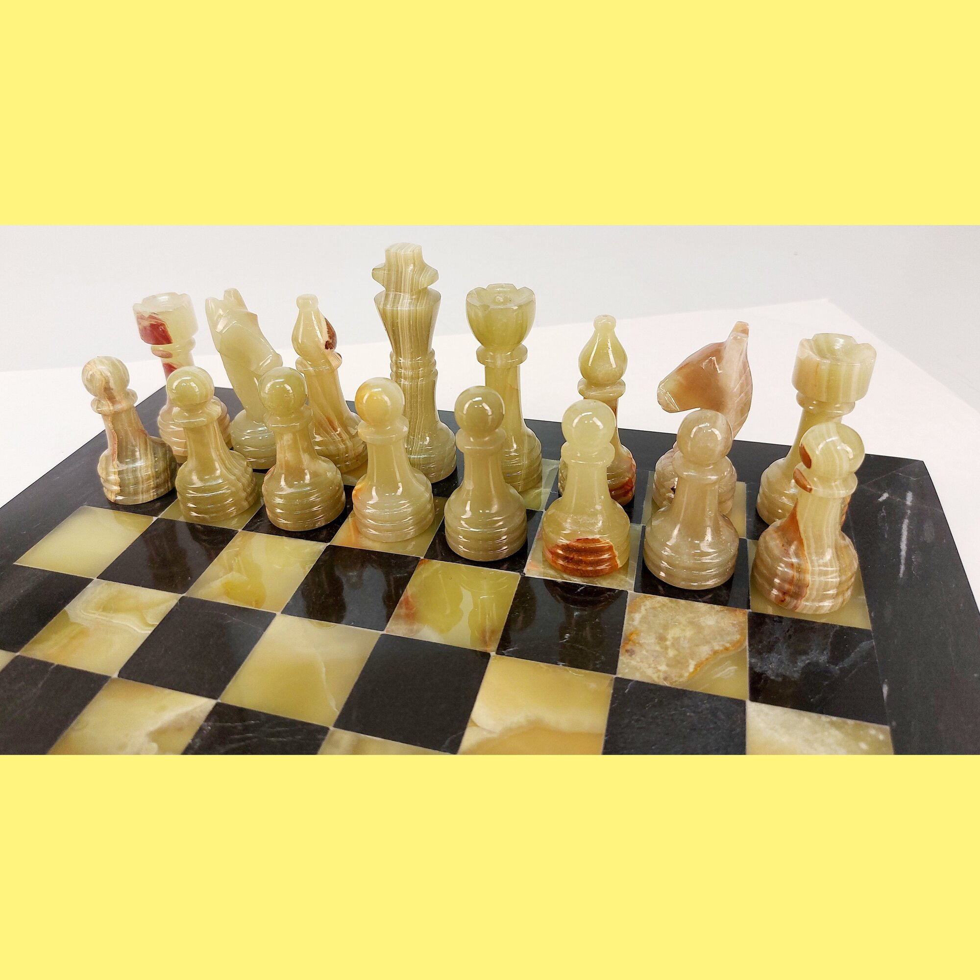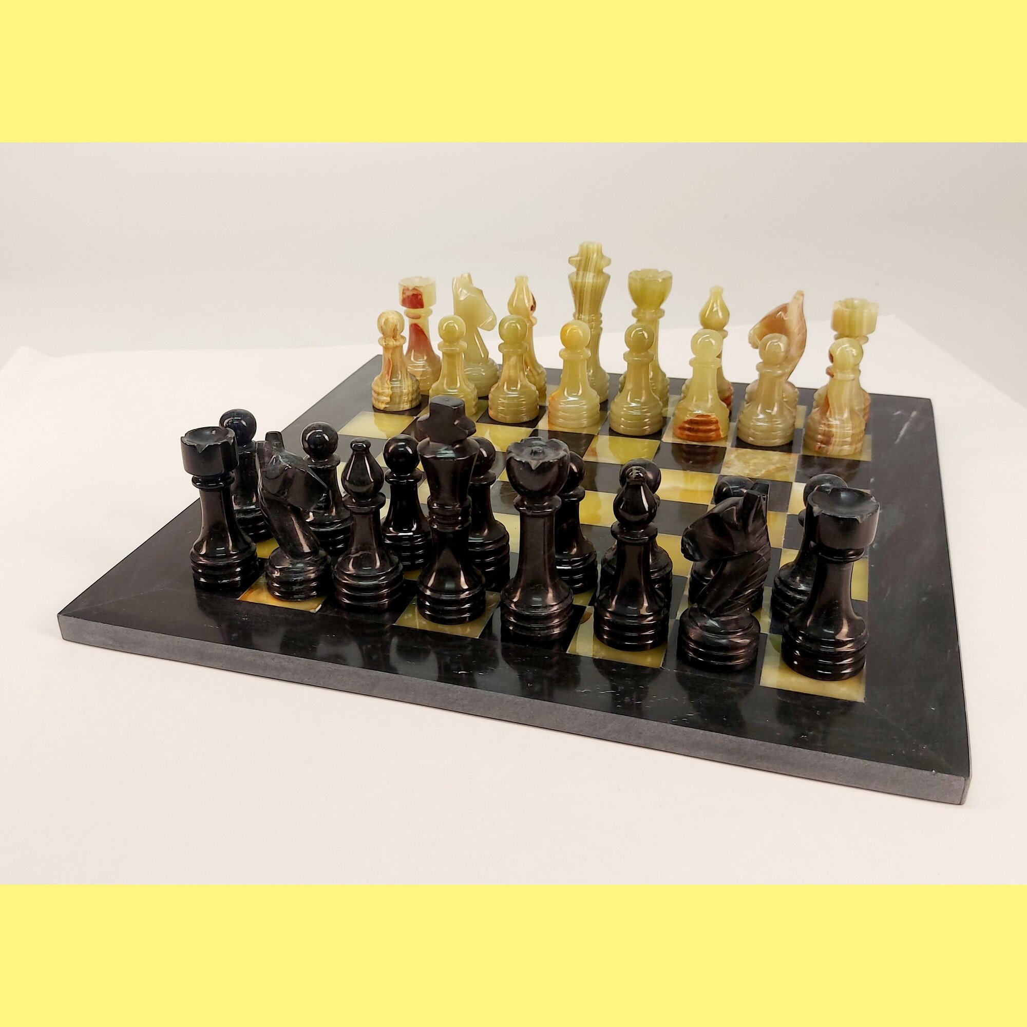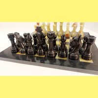 Материал шахматной доски и шахматных фигур - черная яшма и оникс. Полностью ручная работа.