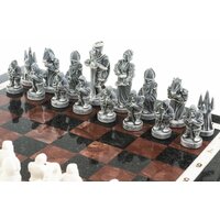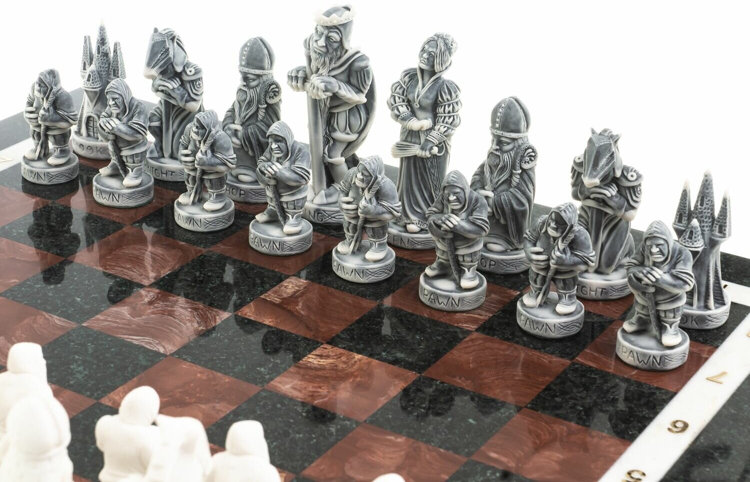 Шахматы "Средневековье" доска 40х40 см лемезит каменные ножки размером 40х40х3,5 см, клетка 4х4см, король 9,5 см, пешка 5 см и весом 11000 г.