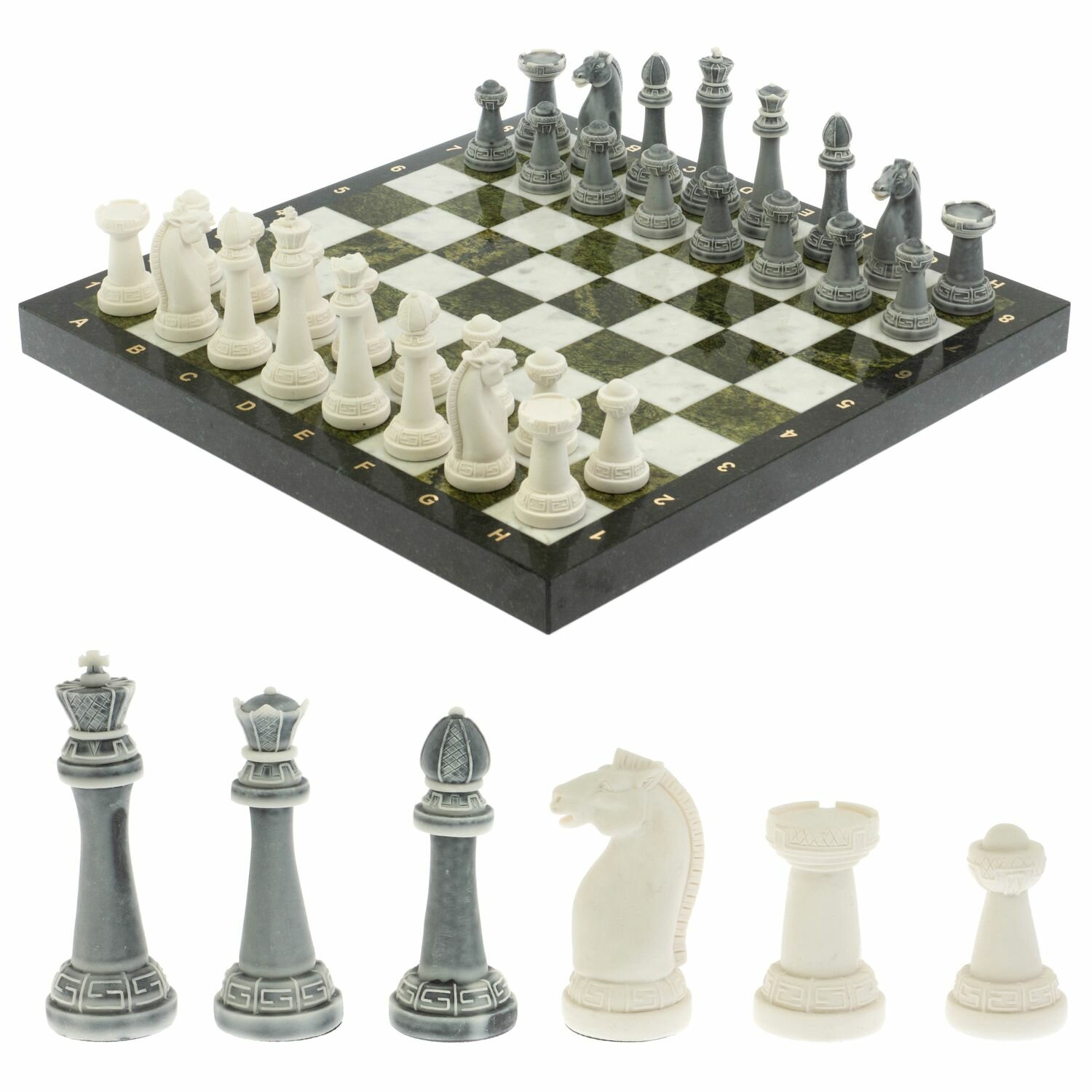 Шахматы "Стаунтон" из мрамолита доска 40х40 см змеевик 129352