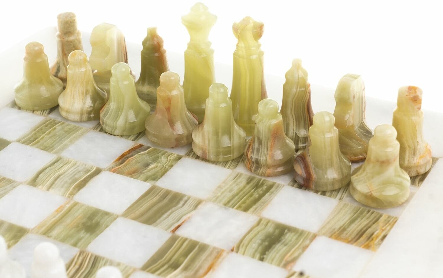 Шахматы из оникса имеют стильный дизайн и вдобавок они сделаны вручную из натуральных и экологичных материалов.