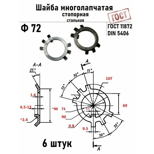 Шайба Ф72 многолапчатая ГОСТ 11872, DIN 5406 сталь 6 шт: сравнение цен, характеристики, фото, актуальное наличие и цены.