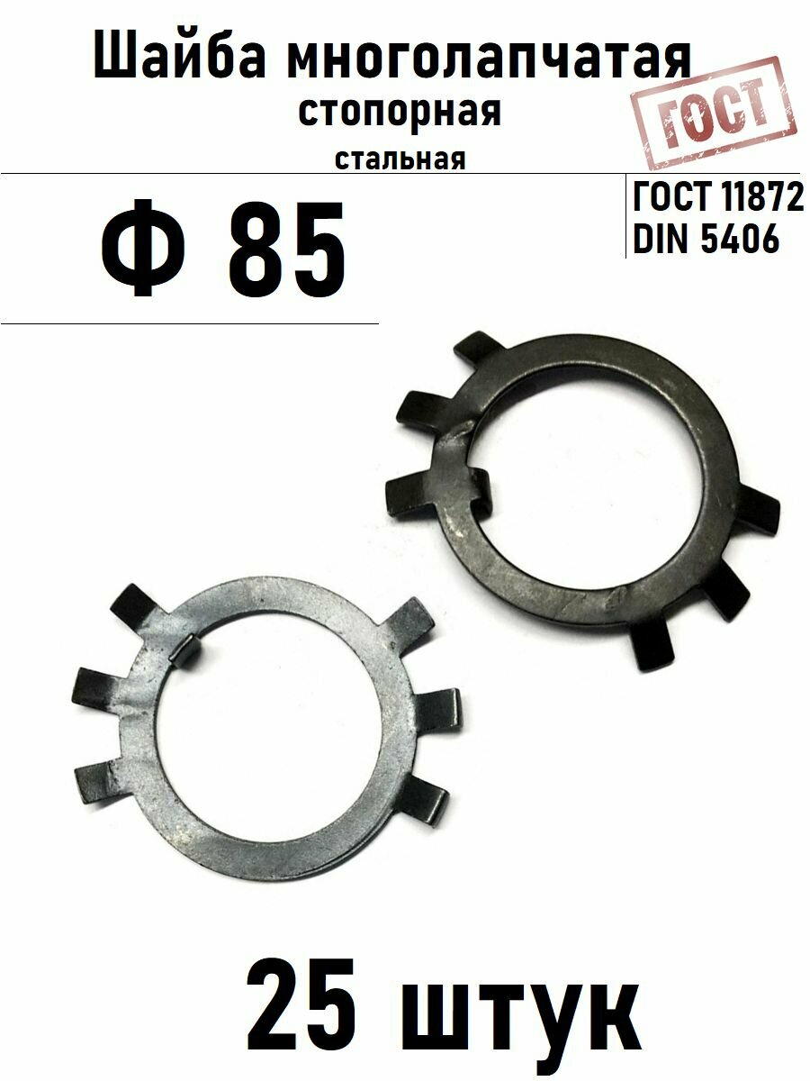 Шайба Ф85 многолапчатая ГОСТ 11872, DIN 5406 сталь 25 шт: сравнение цен, характеристики, фото, актуальное наличие и цены.