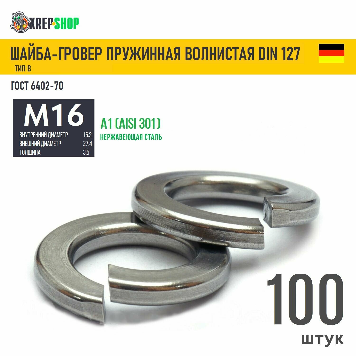 Купить Шайба-гровер Ф16(M16) нерж. А1 DIN 127B, 100 шт с доставкой по всей России. Шайба-гровер Ф16(M16) нерж. А1 DIN 127B, 100 шт: сравнение цен, характеристики, фото, актуальное наличие и цены.