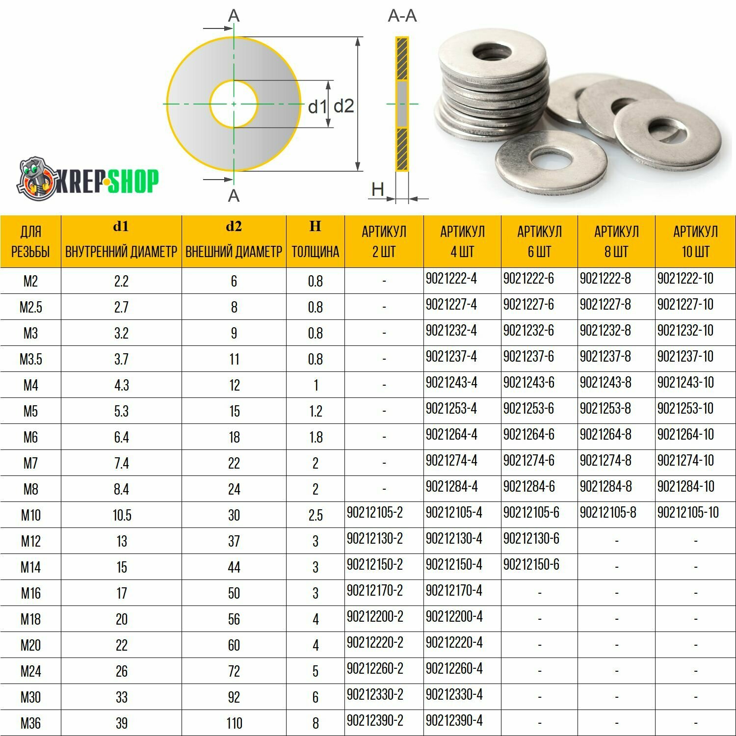 Шайба кузовная увеличенным внешним диаметром А2 (DIN 9021) — широкое, плоское кольцо без рельефа и насечек. Метиз предназначен для увеличения прижимной площади крепежа с одновременной защитой поверхности от деформации. Уплотняет узел, может прикрывать монтажное отверстие большого диаметра.