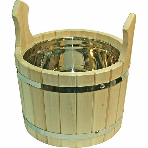 Шайка с удобными резными ручками, выполненная в традиционном стиле бондарным способом. Корпус изготовлен из отборной древесины липы, наиболее часто используемой для производства банной утвари и отделки внутренних помещения благодаря своим высоким экологическим и эстетическим показателям. Материал имеет приятный светлый тон, он не темнеет со временем и не склонен к растрескиванию, имеет бархатистую поверхность. Детали собраны металлическими обручами, придающими конструкции прочность и оригинальный внешний вид. Вставка из нержавеющей стали не только многократно продлевает срок службы изделия, но и позволяет использовать его без предварительной подготовки, которая требуется простым деревянным сосудам, пока набухнет древесина, чтобы плотно закрыть щели между клёпками.