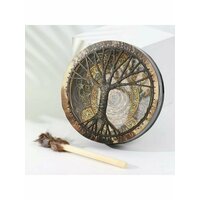 Данный бубен изготовлен руками шамана из Алтая. Проведен обряд оживления данного бубна. В комплекте есть колотушка с меховым наконечником. Диаметр бубна 25 см.