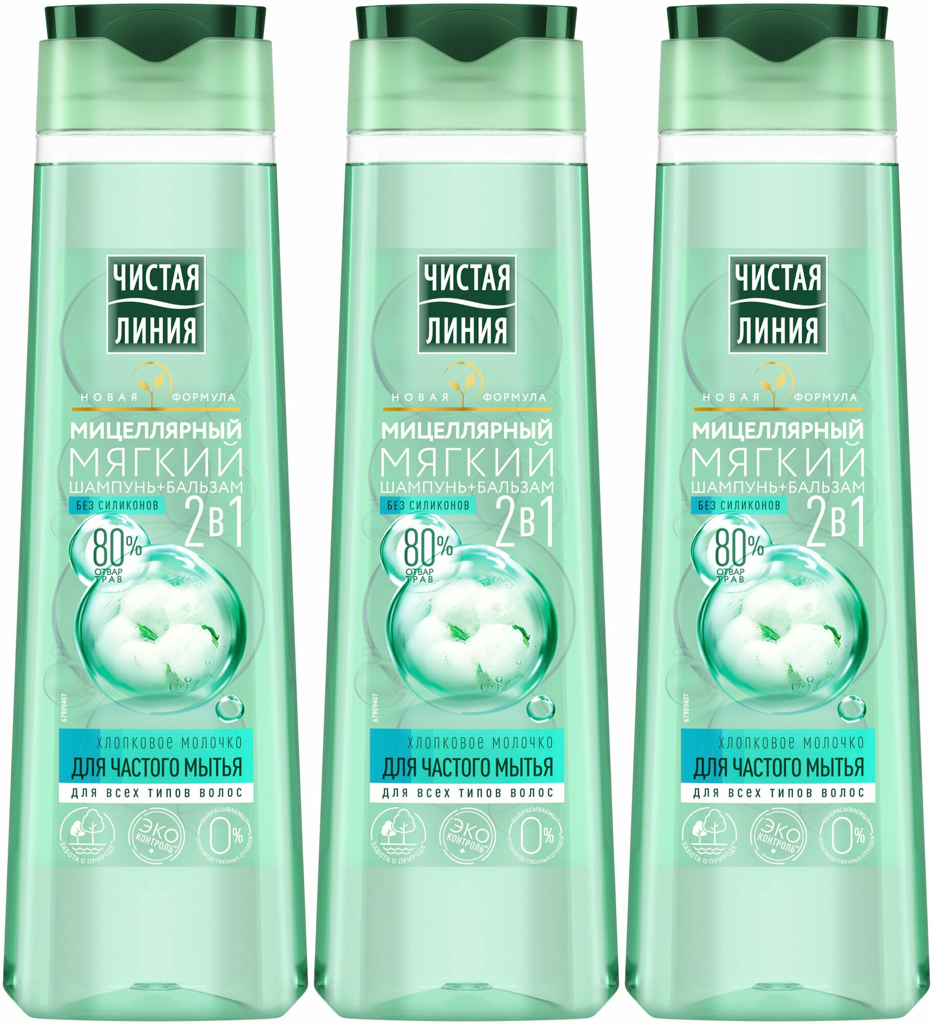 Шампунь-бальзам Чистая Линия мицеллярный, 2в1 мягкий, хлопковое молочко, 400 мл, 3 шт.: сравнение цен, характеристики, фото, актуальное наличие и цены.