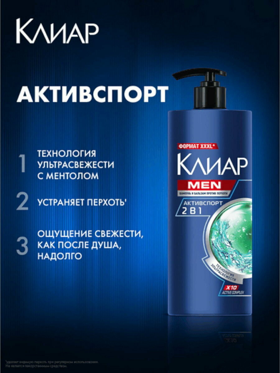Шампунь-бальзам мужской «Клиар», против перхоти, активспорт, 1000 мл: сравнение цен, характеристики, фото, актуальное наличие и цены.