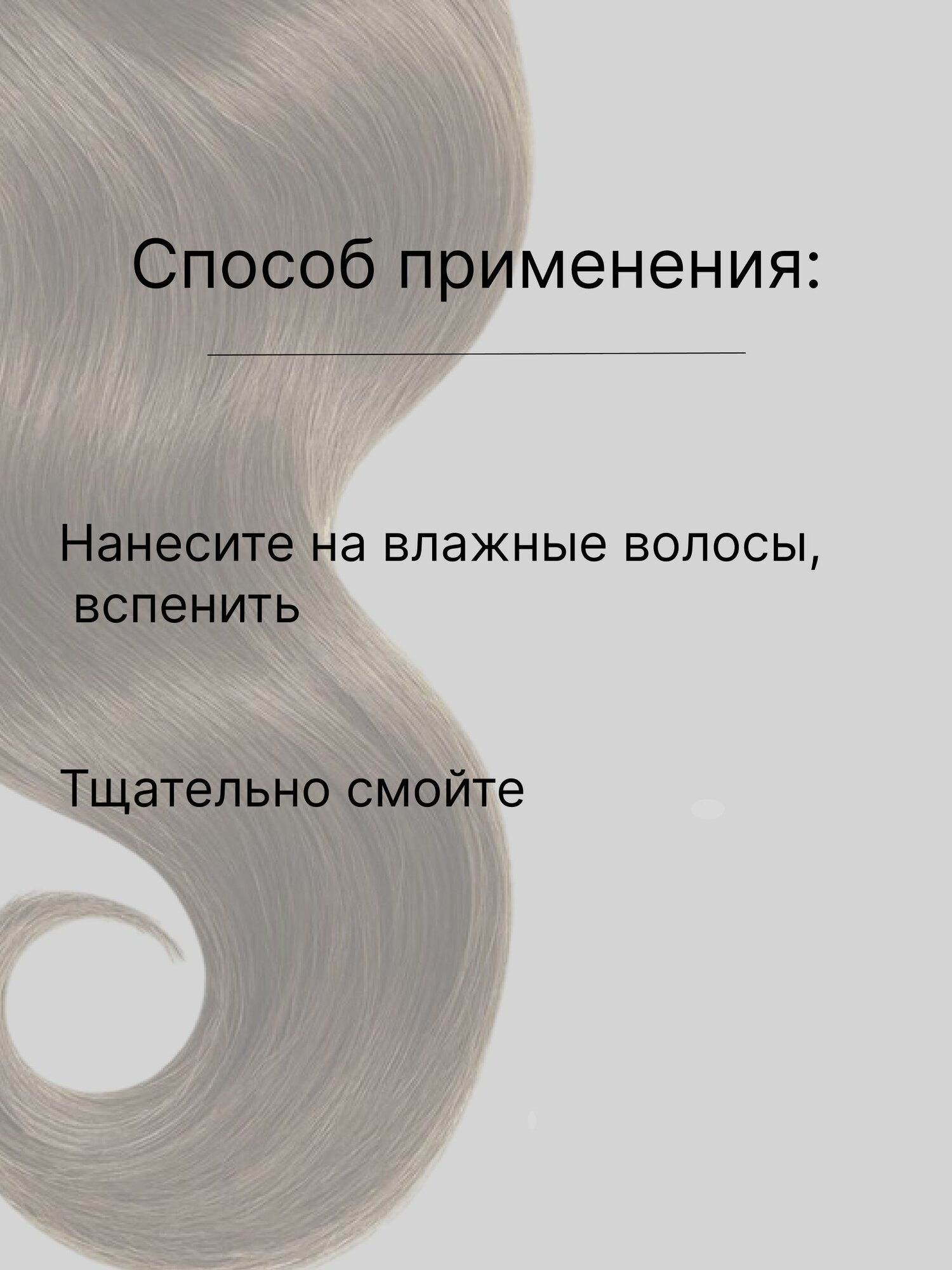 | Способ применения | наносить шампунь на влажные волосы и массировать в голову до появления пены. Смыть и повторить процедуру |