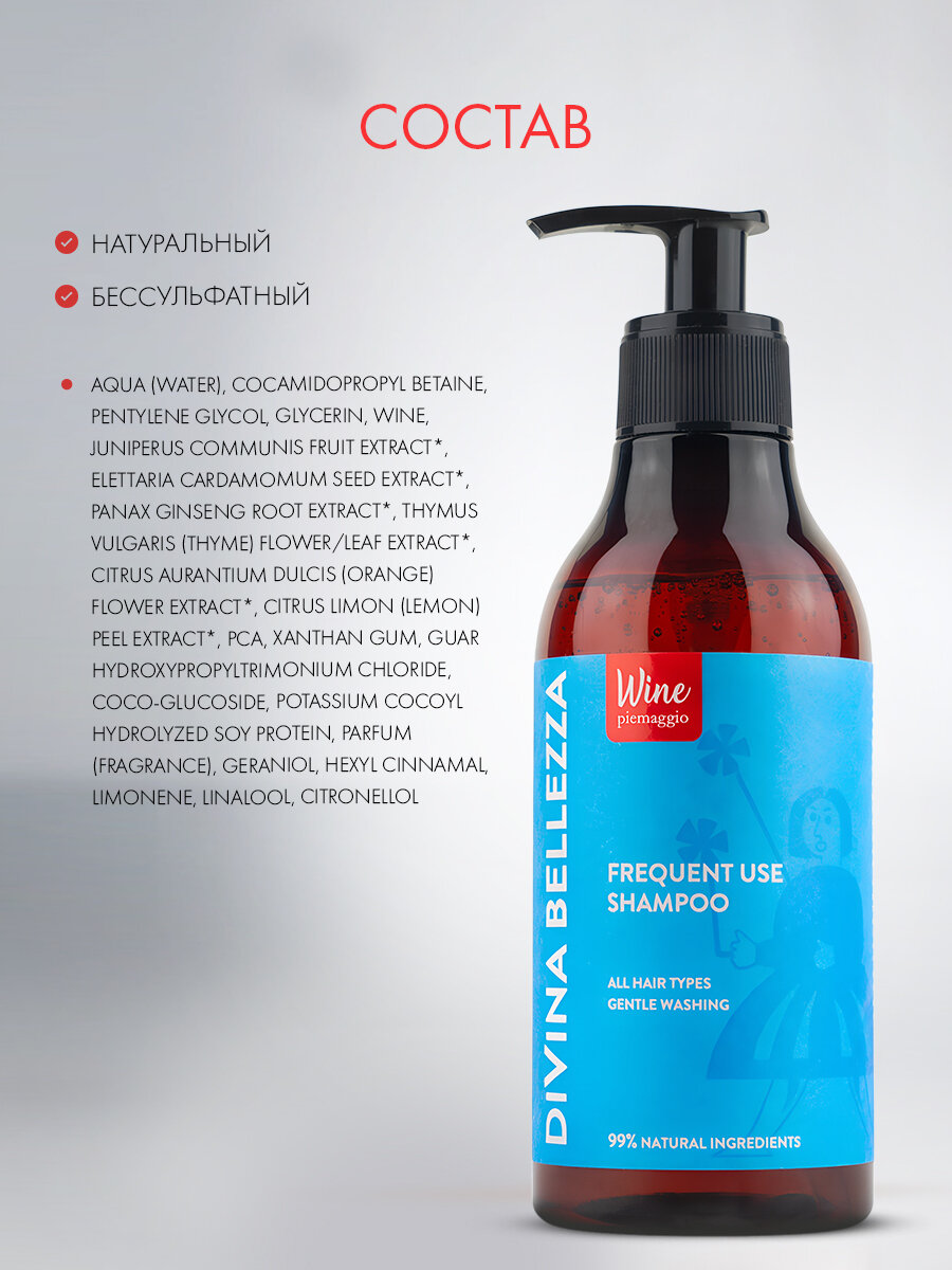 | Состав | AQUA (WATER), COCAMIDOPROPYL BETAINE, PENTYLENE GLYCOL, GLYCERIN, WINE, VACCINIUM MYRTILLUS FRUIT EXTRACT*, PYRUS MALUS (APPLE) FRUIT EXTRACT*, PRUNUS PERSICA (PEACH) FRUIT EXTRACT, CITRUS LIMON (LEMON) PEEL EXTRACT*, CITRUS AURANTIUM AMARA (BITTER ORANGE) PEEL EXTRACT, CITRUS GRANDIS (GRAPEFRUIT) FRUIT EXTRACT, PCA, GUAR HYDROXYPROPYLTRIMONIUM CHLORIDE, SODIUM COCOAMPHOACETATE, SODIUM LAUROYL OAT AMINO ACIDS, XANTHAN GUM, PARFUM (FRAGRANCE), QUATERNIUM-80, LIMONENE, AMYL CINNAMAL, GERANIOL, HEXYL CINNAMAL, LINALOOL. |