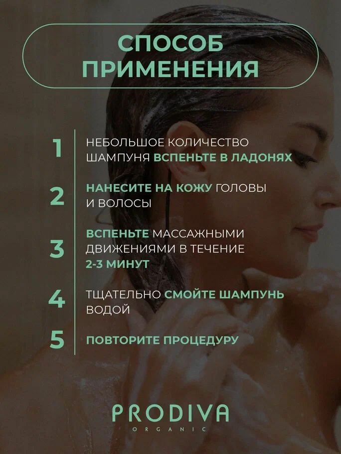 Небольшое количество шампуня вспеньте в ладонях и нанесите на кожу головы и волосы. Вспеньте массажными движениями в течении 2-3 минут. Тщательно смойте водой. При необходимости повторите.