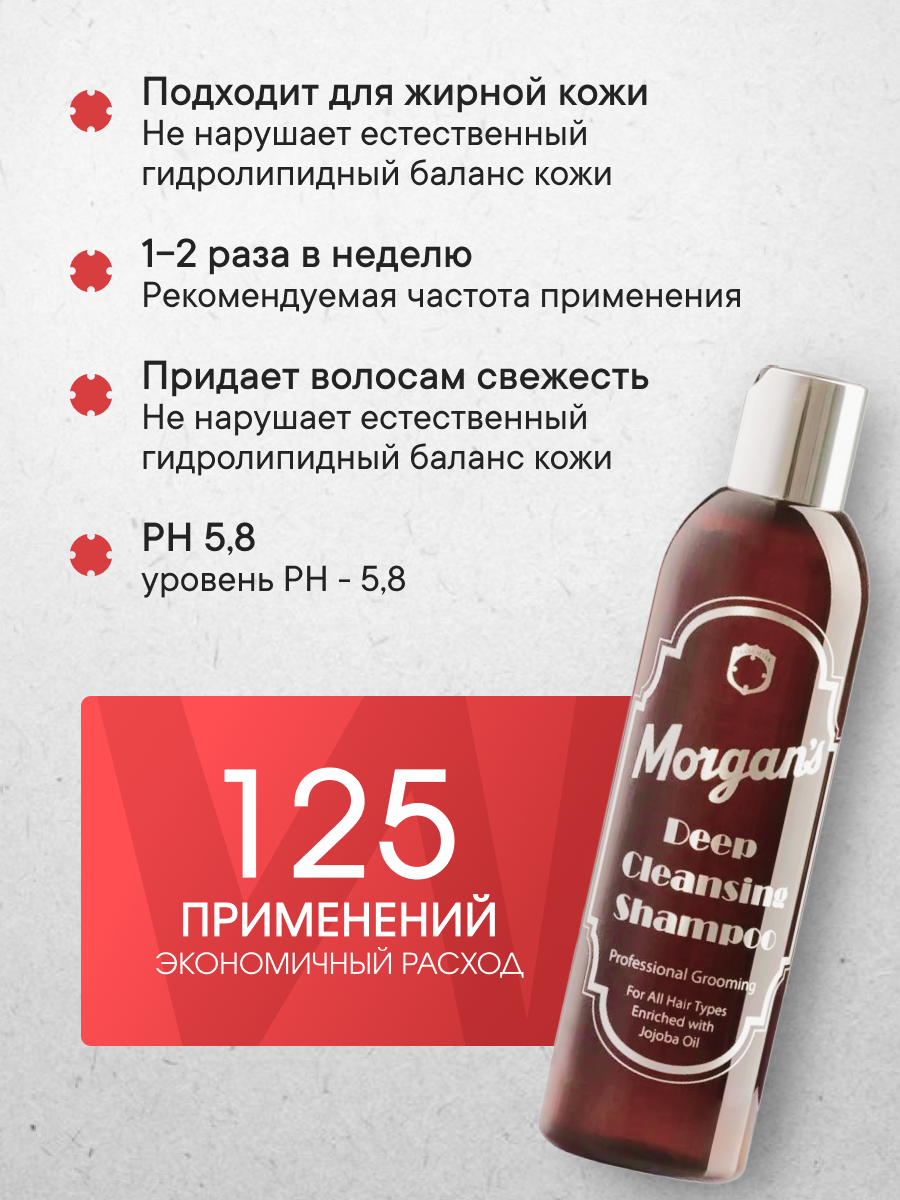Мужской шампунь Morgan’s Deep Cleansing, глубокое очищение, 250 мл: сравнение цен, характеристики, фото, актуальное наличие и цены.