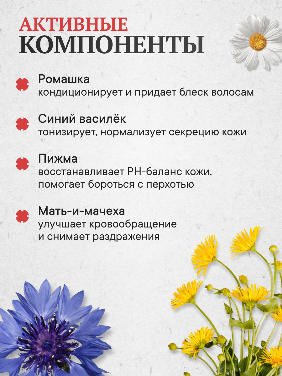 | Не содержит | отдушек, парабенов, полиэтиленгликоля, продуктов животного происхождения, силиконов, спирт, сульфатов |