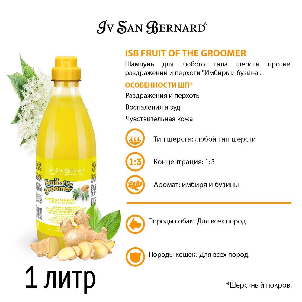 Шампунь Iv San Bernard Fruit of the Groomer Ginger&Elderbery для любого типа шерсти против раздражений и перхоти 1 л