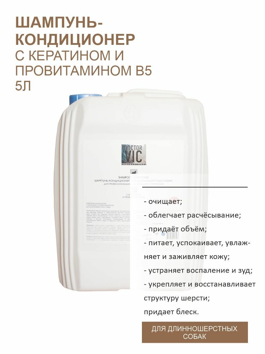 Doctor VIC Шампунь — кондиционер с кератином и провитамином B5 для длинношерстных собак 5л: сравнение цен, характеристики, фото, актуальное наличие и цены.