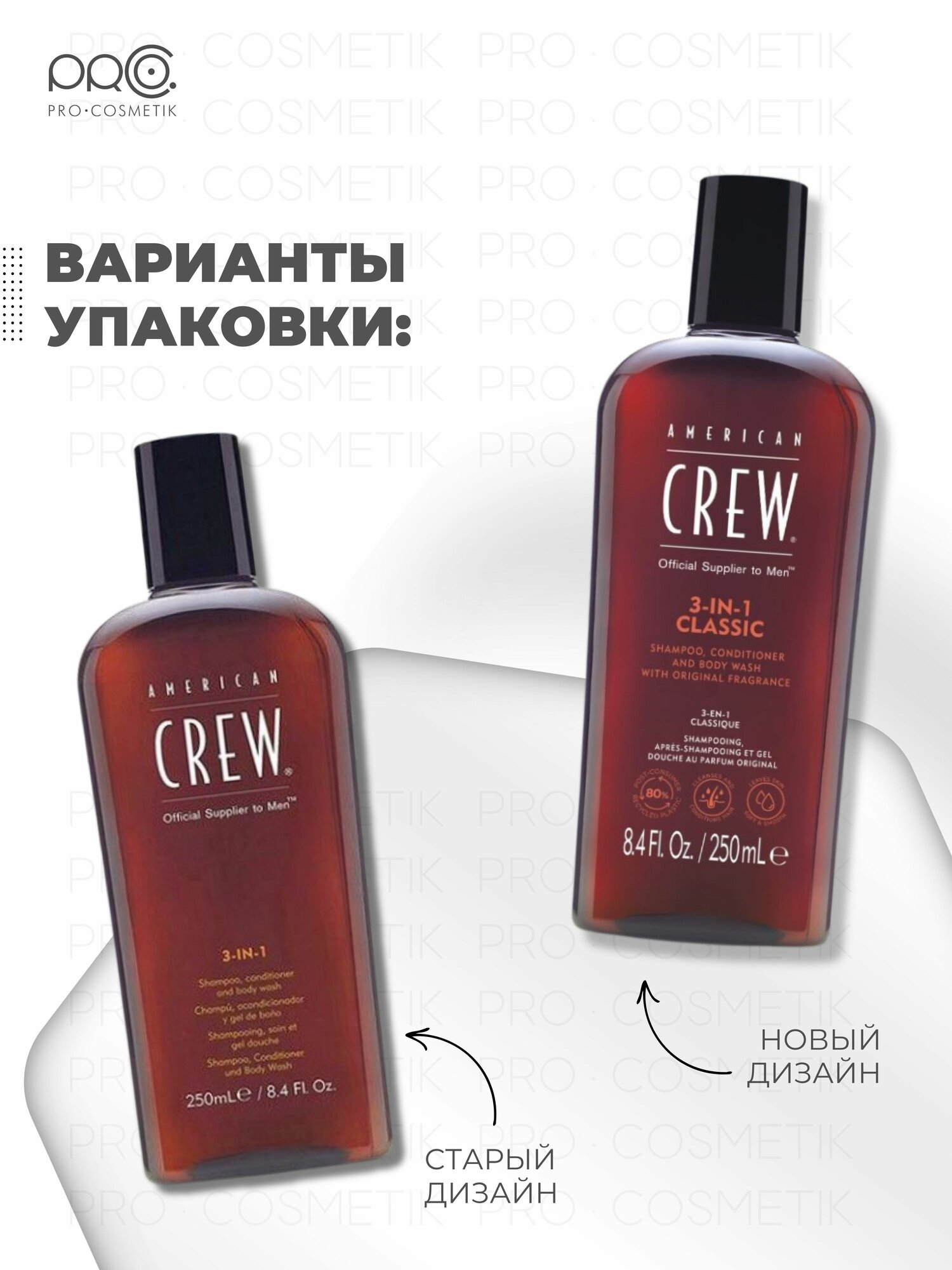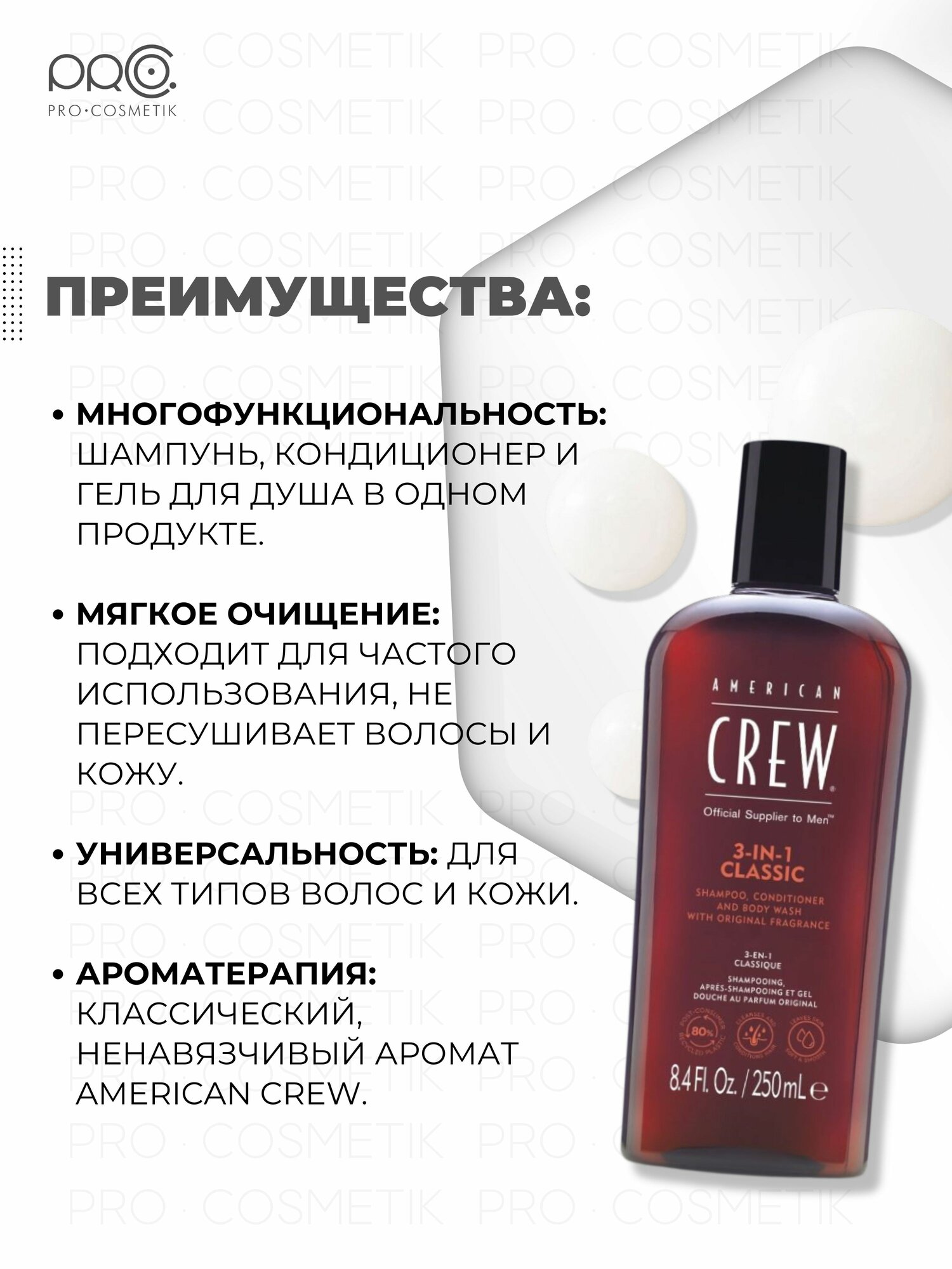 Средство 3 в 1 для мужчин American Crew Classic: шампунь, кондиционер и гель для душа, 250 мл: сравнение цен, характеристики, фото, актуальное наличие и цены.