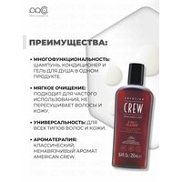 Купить Средство 3 в 1 для мужчин American Crew Classic: шампунь, кондиционер и гель для душа, 250 мл с доставкой по всей России.