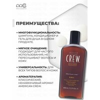 Купить Средство 3 в 1 для мужчин American Crew Classic: шампунь, кондиционер и гель для душа, 450мл с доставкой по всей России.