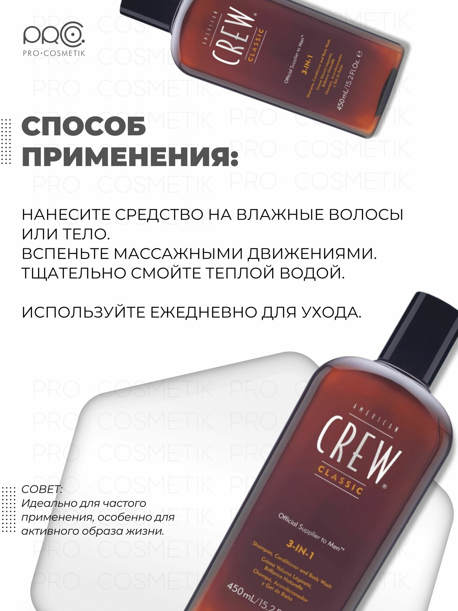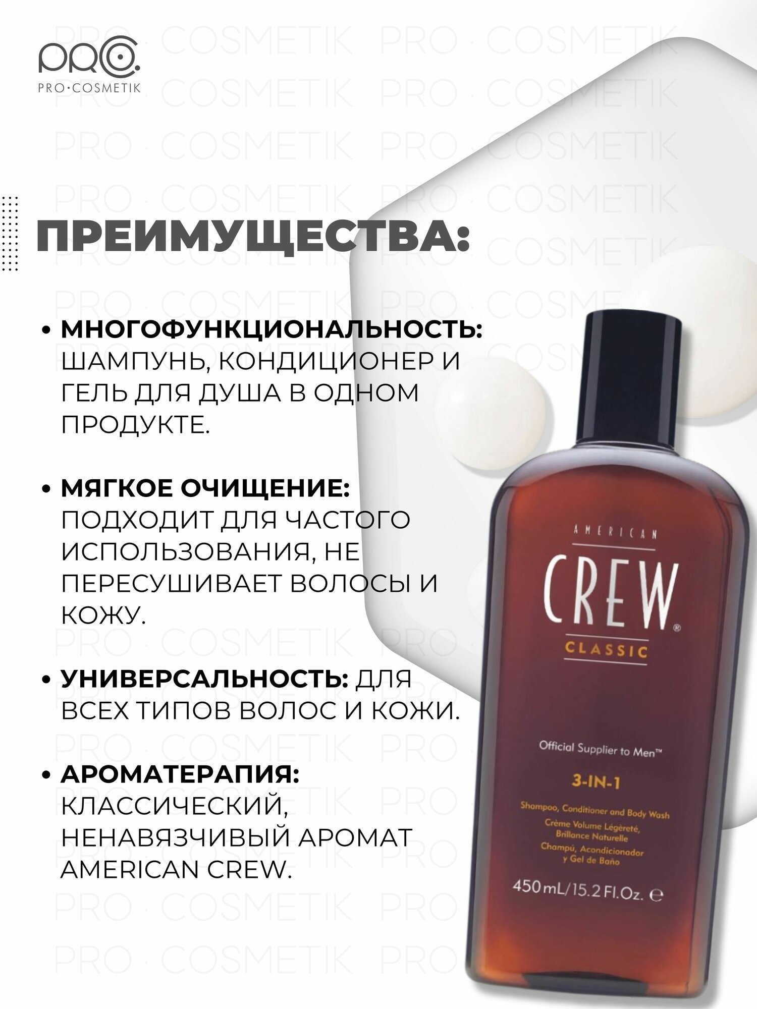 Средство 3 в 1 для мужчин American Crew Classic: шампунь, кондиционер и гель для душа, 450мл: сравнение цен, характеристики, фото, актуальное наличие и цены.