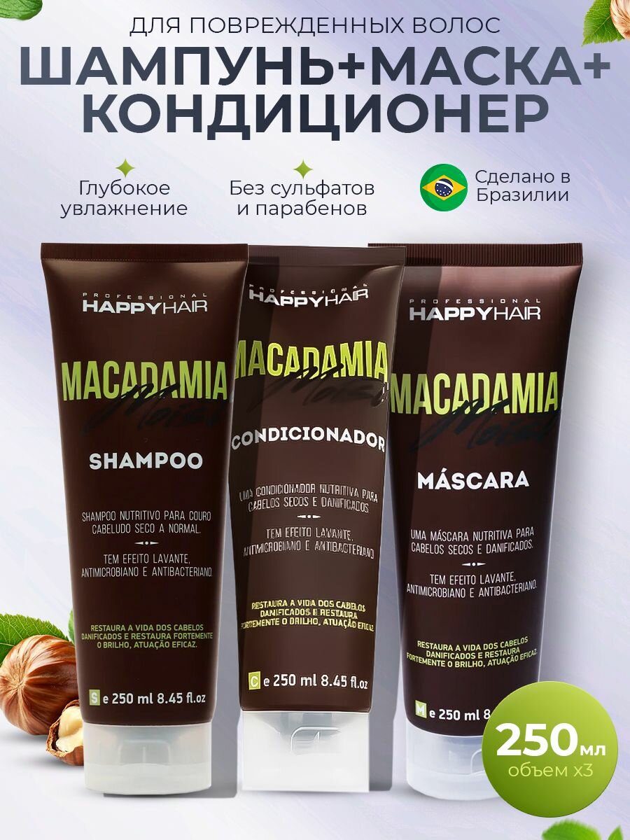 Купить Шампунь + Кондиционер + Маска Набор Happy Hair Professional Macadamia Moist Макадамия 250/250/250 мл с доставкой по всей России.