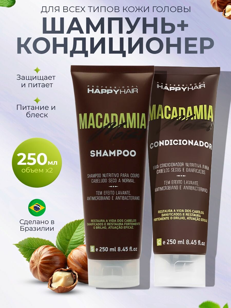 Купить Шампунь + Кондиционер Набор Happy Hair Professional Macadamia Moist Макадамия 250/250 мл с доставкой по всей России.