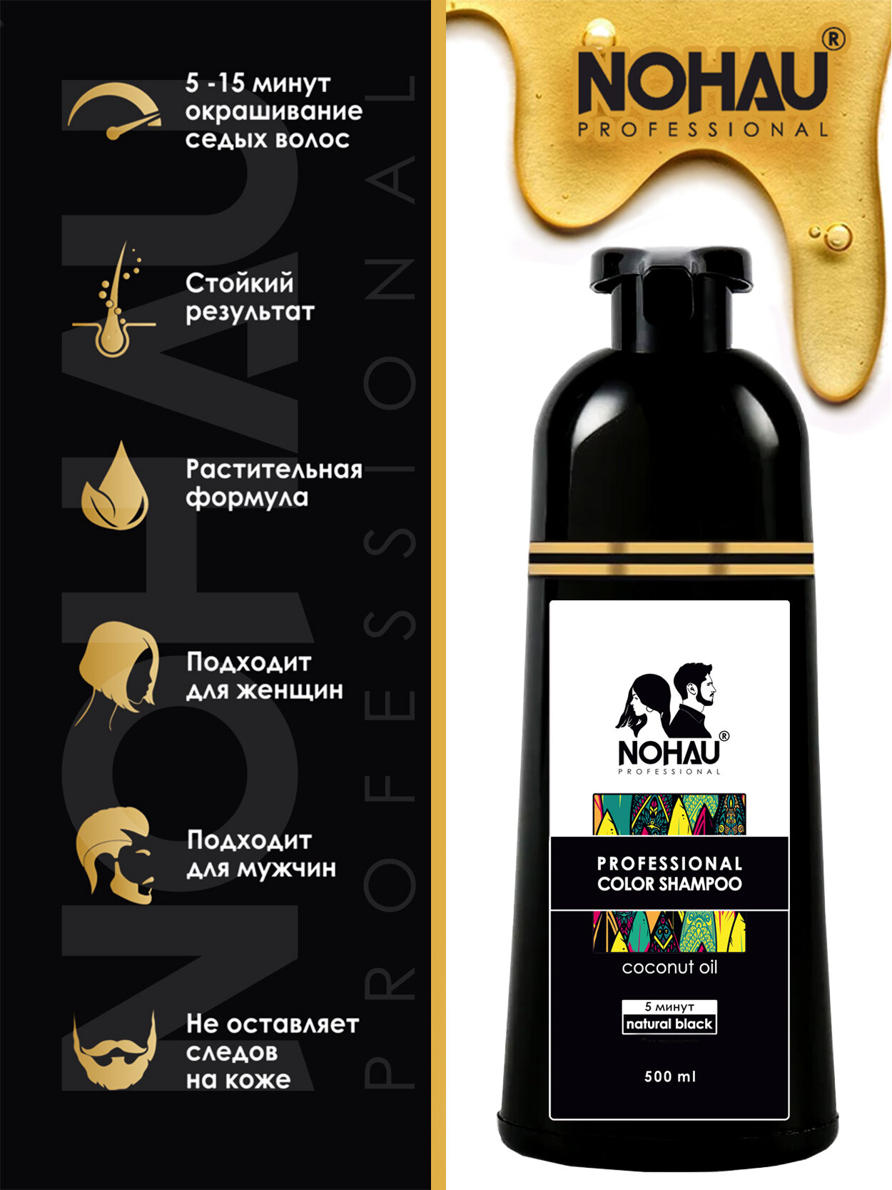 Шампунь — краска для волос черная. Профессиональное экспресс окрашивание седых волос. Nohau. 500 ml: сравнение цен, характеристики, фото, актуальное наличие и цены.