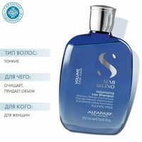 Шампунь для объёма волос Shampoo Volume Fine Hair Semi di Lino Alfaparf Milano Шампунь Volume Fine Hair для объема волос отличное решение, для тех хочет дополнительный объём и облегчить расчесывание. Мягко очищает волосы, обладает антистатическим эффектом, подходит для тонких и средних волос. Специально разработанная технология придает густоту тонким волосам, не утяжеляя их. Благодаря биосовместимому полимеру Volume Boost Complex, помогающему реструктурировать волосяные волокна изнутри, тонкие волосы приобретают больше объема, увеличиваясь в диаметре без потери легкости и мягкости. Компоненты комплекса сверх схожи, поэтому легко впитываются, имитируют естественную структуру керамидов волос. Комплекс придает объем за счет двойного действия, образуя эластичную пленку на поверхности и проникая внутрь самого волокна, выполняя «восстанавливающее» действие. Результат: объемные, эластичные волосы. Способ применения: Нанести на мокрые волосы, вспенить, затем обильно смыть водой. Повторите процедуру. Описание на Alfaparf Milano Com: Volumizes, thickens, hydrates Semi di Lino Volumizing Low Shampoo is a gentle cleansing, volumizing and body-intensifying shampoo that enhances the thickness of the fiber for natural volume.