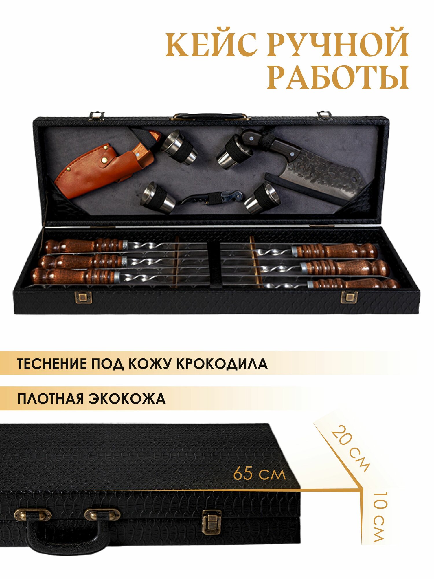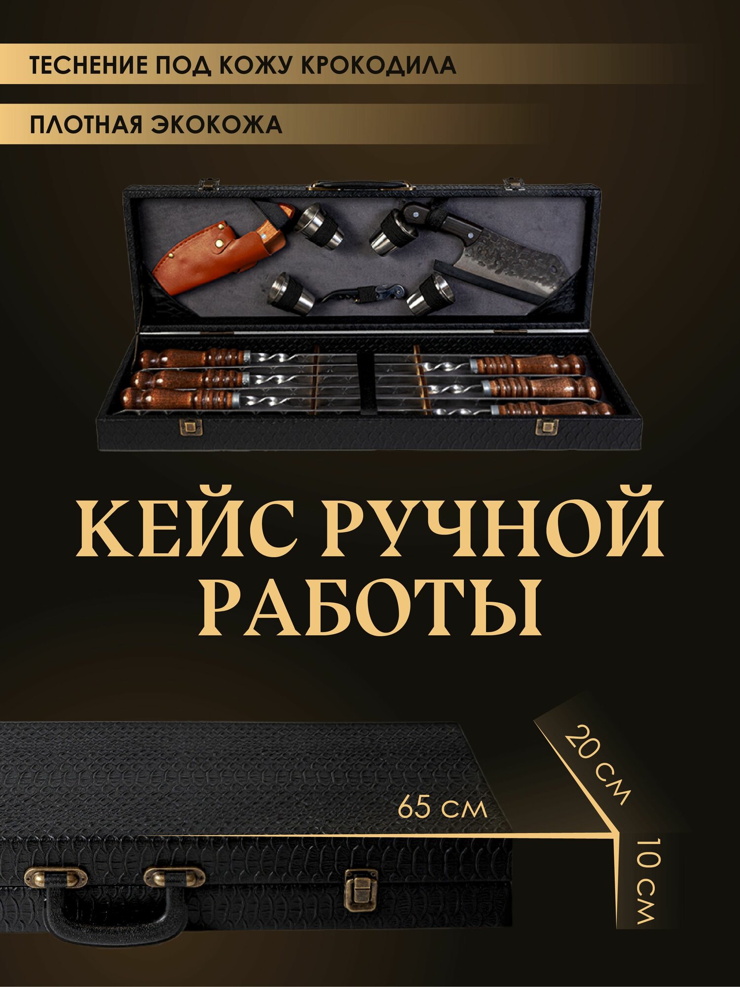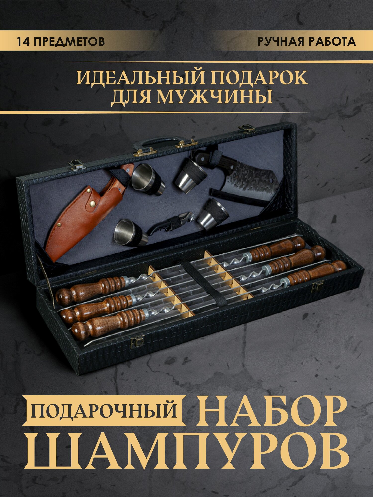 Ищете идеальный подарок мужчине? Представляем вашему вниманию подарочный набор шампуров в кейсе собственного производства. Гарантируем долговечность и надежность при приготовлении ваших любимых блюд на мангале, барбекю и гриле. Шашлычный набор состоит из шампуров с деревянной ручкой, выполненные из нержавеющей стали AISI430. Шампуры имеют общую длину 63 см, рабочую длину 40 см. Набор идеально подходит для пикника, выезда на природу или просто для приготовления шашлыка во дворе. Каждое изделие тщательно продумано и выполнено с любовью, чтобы каждый момент вашего отдыха был незабываемым. Набор для шашлыка станет отличным подарком на 23 февраля, день рождения или Новый год! Не упустите возможность порадовать близкого человека, коллегу, начальника. Этот набор для шашлыка подарочный станет настоящим украшением любой мужской коллекции! Заказывайте прямо сейчас и готовьтесь к незабываемым вечерам с шашлыками!