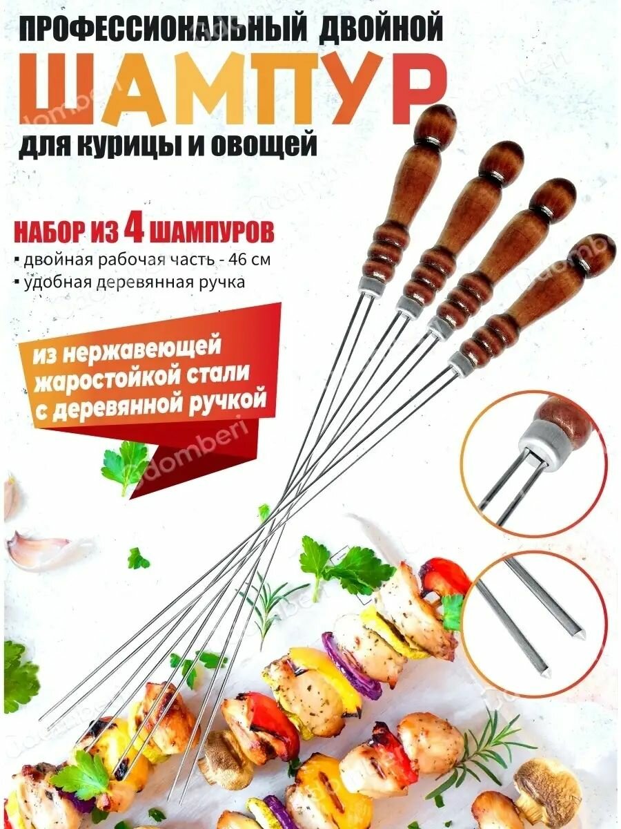 Шампура с деревянной ручкой для шашлыка и овощей 4 шт: сравнение цен, характеристики, фото, актуальное наличие и цены.