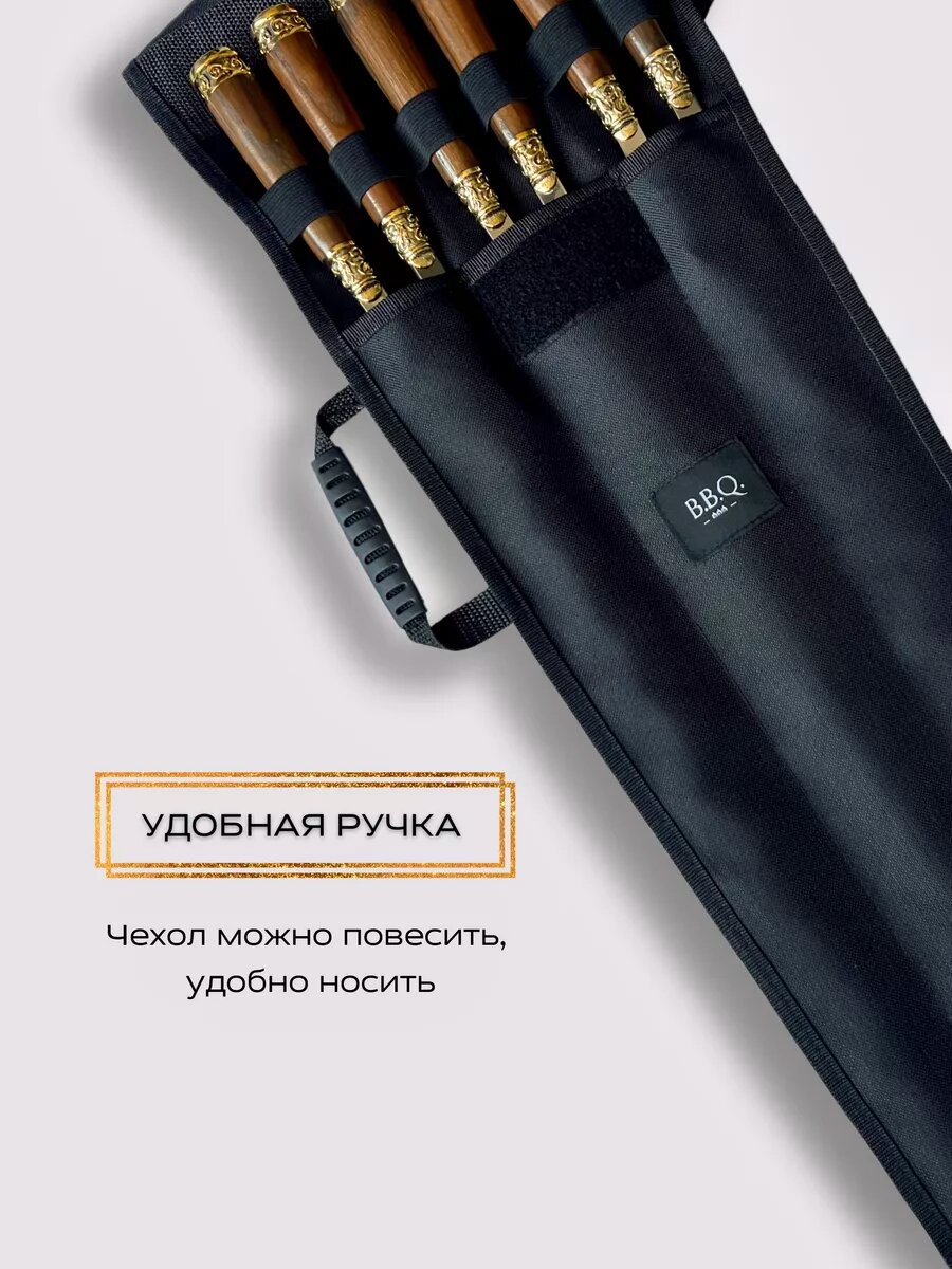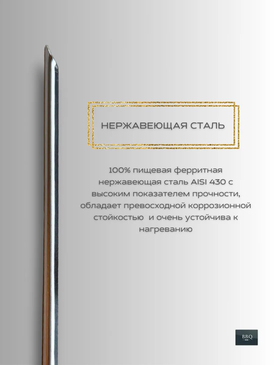 Шампура от производителя в РФ. Наше преимущество - качественное исполнение. Надежное крепление. Использование нетоксичного лака. Толстая пищевая нержавеющая сталь. Острое ровное острие. Практичный удобный чехол. Отдых на природе - это прекрасный способ расслабиться и отдохнуть, забыв о домашних делах и заботах. Всем любителям хорошего отдыха понравится этот набор из разных шампуров от компании B.B.Q. Набор шампуров с деревянной ручкой - это отличный подарок для любого мужчины. Все составляющие шашлычного набора находятся в двустороннем практичном чехле из водоотталкивающей износостойкой ткани. Шампуры производятся из 100% нержавеющей стали марки AISI 430. Она устойчива к нагреванию. Набор подойдет для приготовления на мангале барбекю, стейка, сосисок, люля - кебаб. Этот набор шампуров для шашлыка подарочный можно подарить на годовщину свадьбы, юбилей.