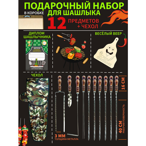 Шашлычный набор - это оригинальный и практичный подарок: мужчине, мужу, парню, брату, сыну, папе, дедушке, другу, начальнику, коллеге, молодоженам, паре или любимому на день Рождения, Новый Год 2023, 23 февраля или любой праздник. Кроме того, он отлично подойдет для любителей кавказской кухни, где шашлык и люля-кебаб играют важную роль.
