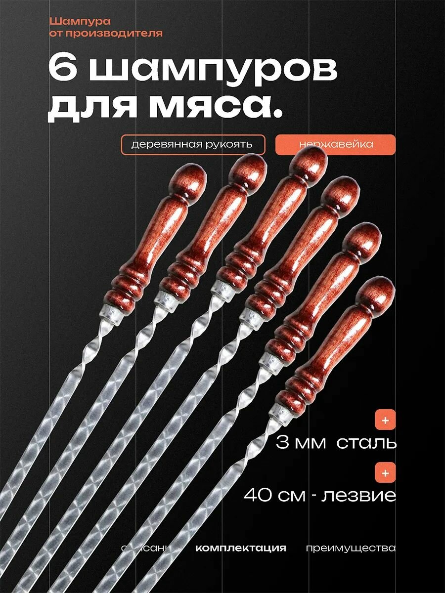 Набор шампуров с деревянной ручкой для шашлыка 6 шт