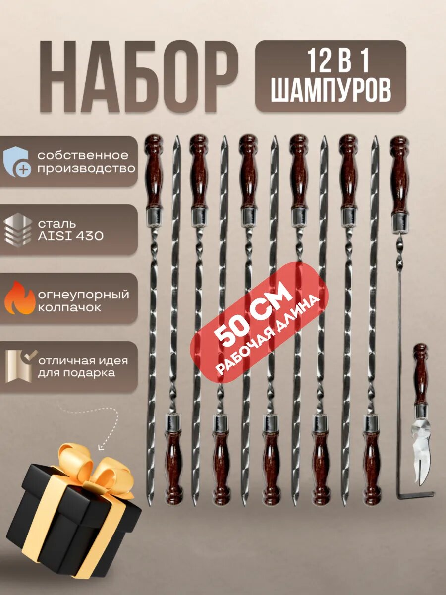 Шампура с деревянной ручкой набор подарочный 12 в 1, 50 см рабочая длина: сравнение цен, характеристики, фото, актуальное наличие и цены.