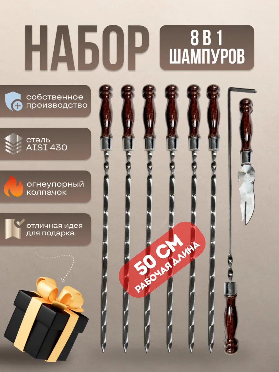 Шампура с деревянной ручкой набор подарочный 8 в 1, 50 см рабочая длина: сравнение цен, характеристики, фото, актуальное наличие и цены.