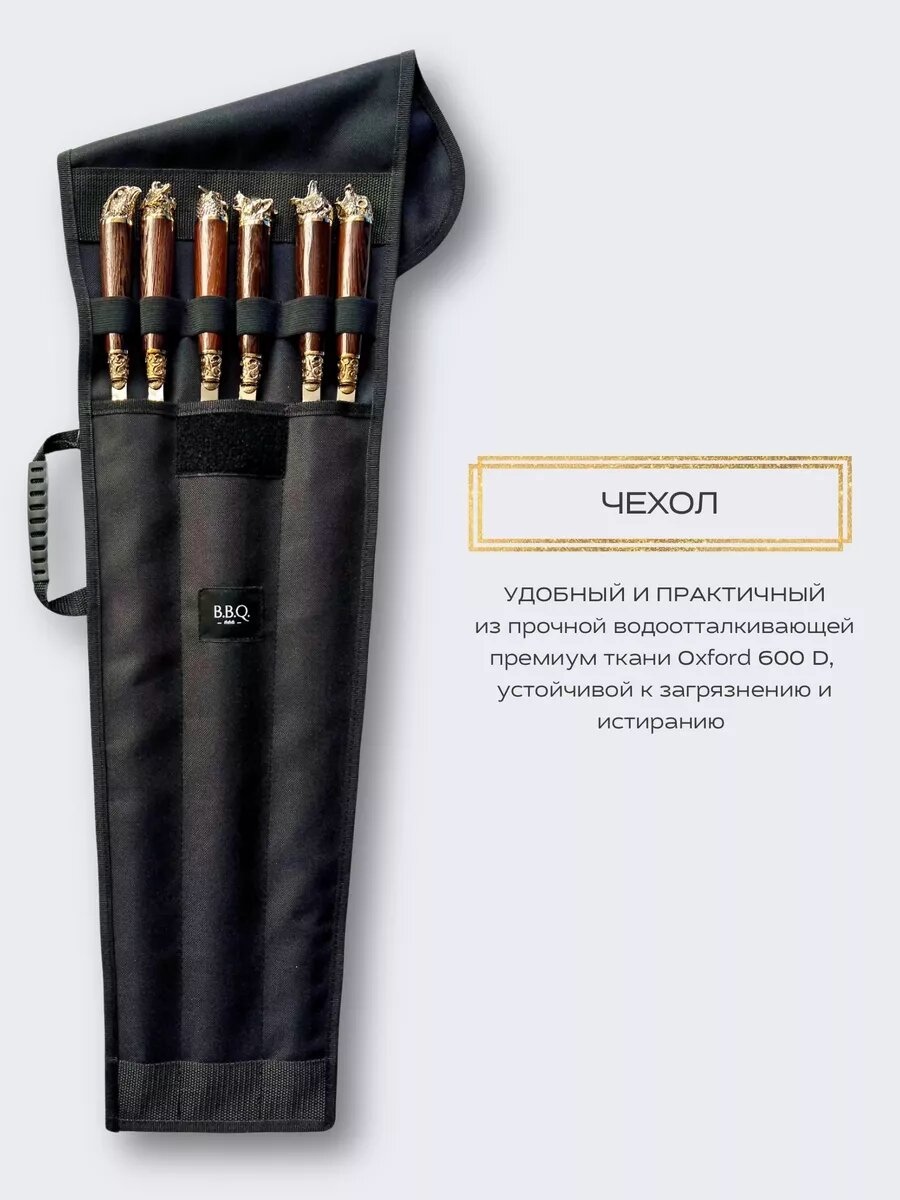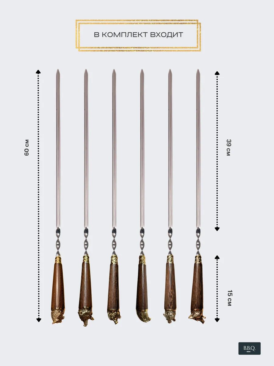 Набор шампуров подарочный от B.B.Q. – это идеальный выбор для любителей отдыха на природе и кемпинга. Этот набор включает в себя высококачественные шампуры, изготовленные из натурального дерева и нержавеющей стали, что обеспечивает их долговечность и удобство использования. Деревянные ручки и латунные элементы рукоятки добавляют элегантности и стиля, делая этот набор не только практичным, оригинальным, но и многофункциональным подарком мужчине. Толщина металла составляет 2 мм, что гарантирует эффективное прокаливание мяса и других продуктов. Угловой формат шампуров обеспечивает легкость и комфорт при приготовлении шашлыков, делая этот набор незаменимым спутником вашего отдыха на пикниках и барбекю. Упакован в чехол и картон, этот мужской набор от производителя B. B. Q. – это символ наилучшего качества и внимания к деталям.