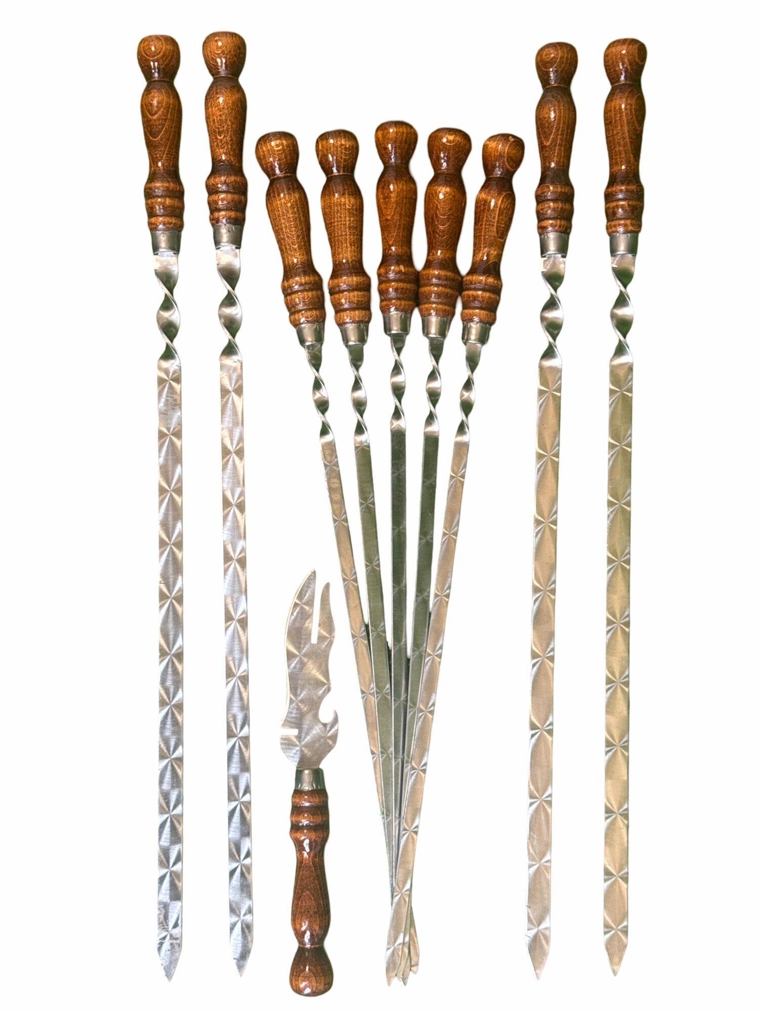 Шампуры ONNEKAS, с деревянной ручкой, нержавеющая сталь, 9 штук, общая длина 40см: сравнение цен, характеристики, фото, актуальное наличие и цены.