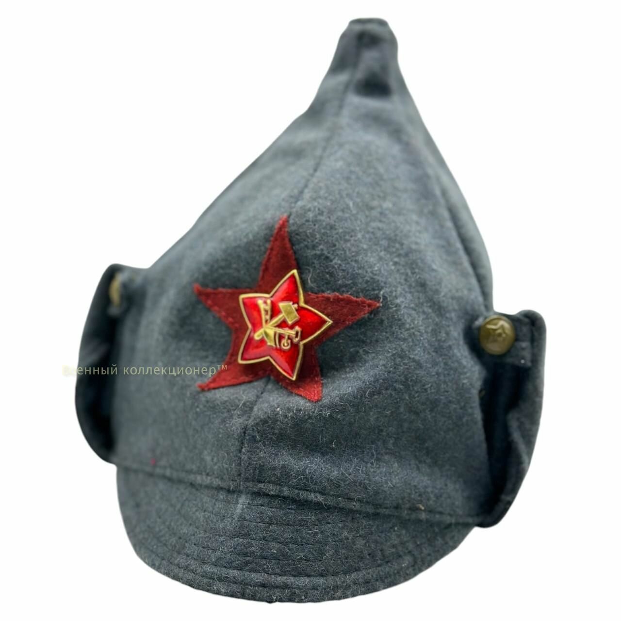 Головной убор состоит из колпака по форме головы. Колпак состоит из шести одинакового размера кусков мундирного сукна защитного цвета, формы равнобедренного сферического треугольника, сшиваемых один с другим по боковым сторонам так, что вершины треугольников сходятся наверху в центре колпака. К наружному колпаку пришивается внутренний из бязи колпак с ватною простёганной подкладкой. Спереди к колпаку головного убора, симметрично по отношению к козырьку пришивается пятиконечная звезда из цветного сукна, обращённая острым концом вверх. В центре звезды прикрепляется значок кокарда установленного образца .