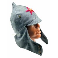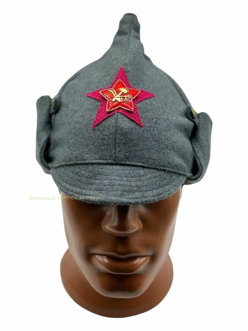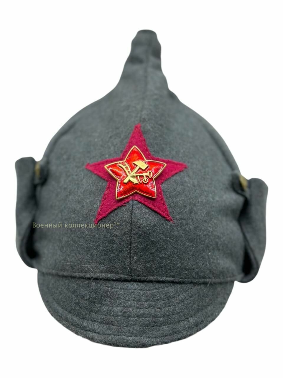 Шапка буденовка РККА, Пехотные войска, суконный шлем, розовая звезда, богатырка, с кокардой звезда плуг И молот. Качественная репродукция, с оригинальной фурнитурой.