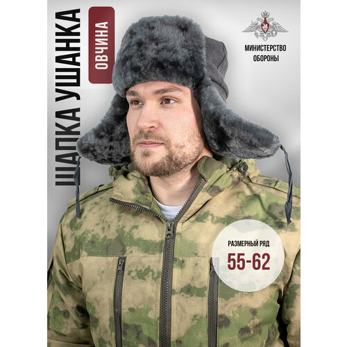 Купить Шапка форменная военная ушанка МО, серый мех из овчины, размер 62, полигон с доставкой по всей России.