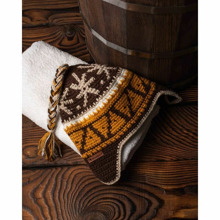 Шерстяная вязаная шапка в скандинавском стиле, с колоритным орнаментом и косичкой. Она даст возможность почувствовать атмосферу национальный банной культуры жителей Финляндии. Связана из натуральной шерсти высшего качества, мягкая, не вызывает раздражения кожи. Хорошо прикрывает голову и волосы от воздействия высокой температуры в парилке. В такой шапке банная процедура будет по-настоящему комфортной и безопасной.
