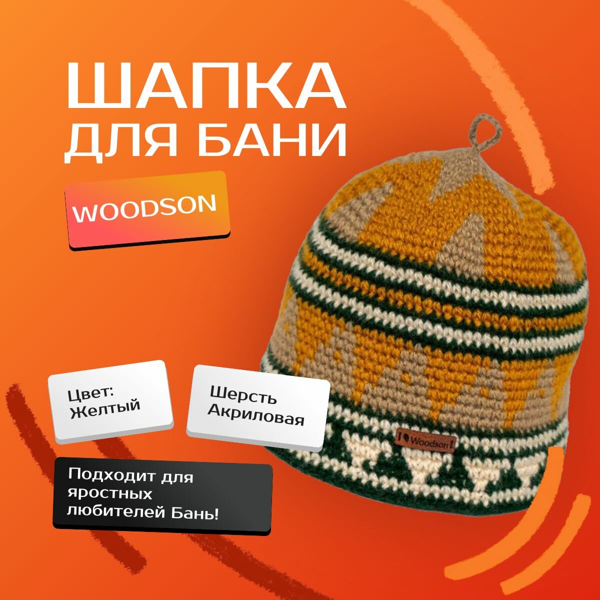 Шапка вязаная для бани Woodson Viking, орнамент, без косичек (желтый), акриловая шерсть: сравнение цен, характеристики, фото, актуальное наличие и цены.
