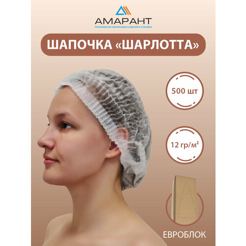 Шапочка Амарант "Шарлотта" в евроблоке, одноразовая, белая, 500 штук - это удобный и практичный головной убор для всех, кто ценит комфорт и безопасность. Наша шапочка выполнена из высококачественного материала - нетканого полотна, которое обладает множеством преимуществ. Она гипоаллергенна, экологична, водонепроницаема, воздухопроницаема, устойчива к механическим и химическим воздействиям, имеет антистатические свойства и защищает от пыли и ветра.