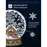 Особенное удовольствие вы получите, если соберете снежный шар головоломку деревом наверх. Снежинки вам покажутся совсем другими, а сюжет деревянного пазла, конечно же, будет новым. Именно с деревянной стороны вас будут поджидать милейшие «жители зимнего шара»: ребятишки в зимних забавах, елочки, часики с курантами, «три белых коня» из знаменитой песни…