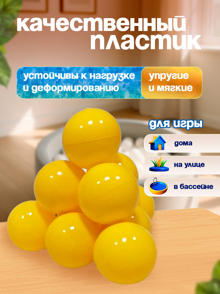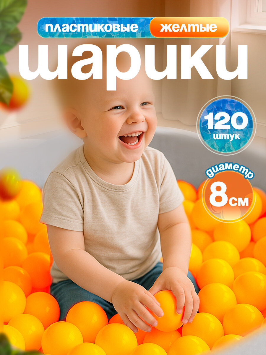 Купить Шарики для сухого бассейна 120 шт пластиковые 8 см, (желтый) 2-266-2022 с доставкой по всей России.