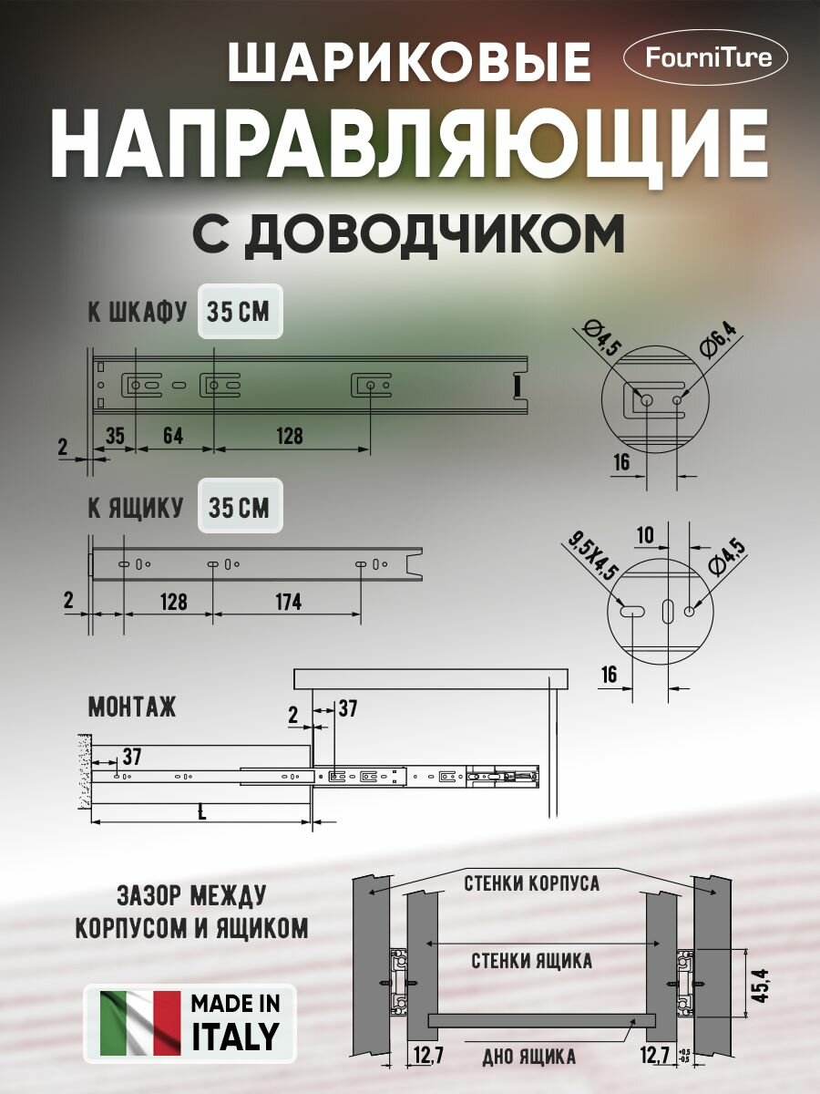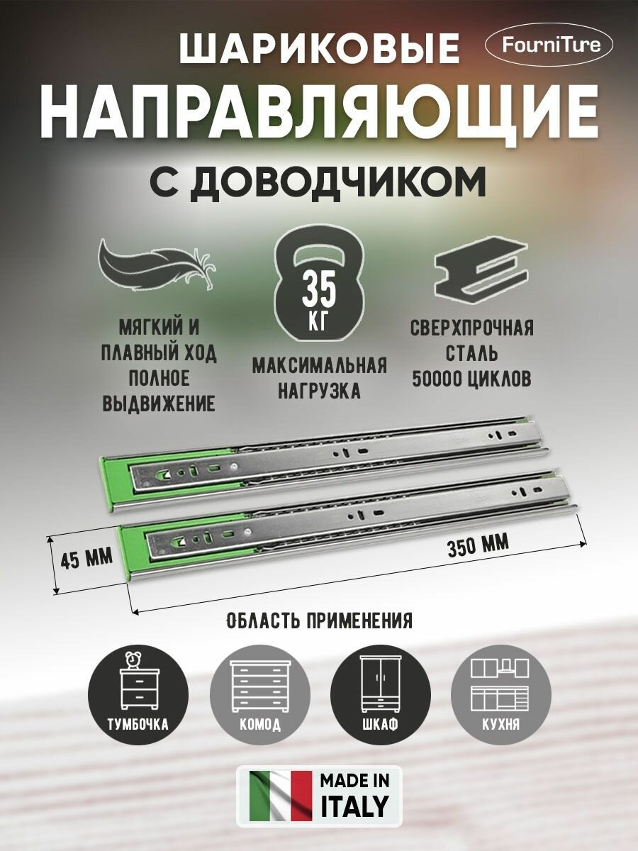 Шариковые направляющие для ящиков 350мм с доводчиком полного выдвижения, 45х350 мм, нагрузка 35 кг, FGV, 3 комплекта (6 шт): сравнение цен, характеристики, фото, актуальное наличие и цены.