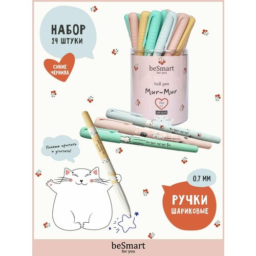 Комплект из 24 ручек beSmart – идеальный выбор для всех, кто ценит красивые и функциональные канцтовары. Они предназначены специально для школы, обеспечивая комфорт во время долгого письма. Корпус ручек выполнен из прочного пластика с эргономичным дизайном и рифленым местом, которое предотвращает скольжение пальцев и делает письмо более легким и точным. Поверхность покрыта материалом Soft Touch, который приятен на ощупь. Корпус шариковой ручки имеет плотный колпачок, который защищает вещи от возможных проливов чернил. А крепкий клип-зажим позволяет удобно закрепить ручку на тетради или одежде. Сменные стержни синего цвета обеспечивают яркие насыщенные линии толщиной 0,7 мм, быстро высыхают и не размазываются. Этот милый подарочный набор для школьников от beSmart станет прекрасным дополнением к школьной канцелярии, порадует детей и взрослых своим эстетичным дизайном и высоким качеством.