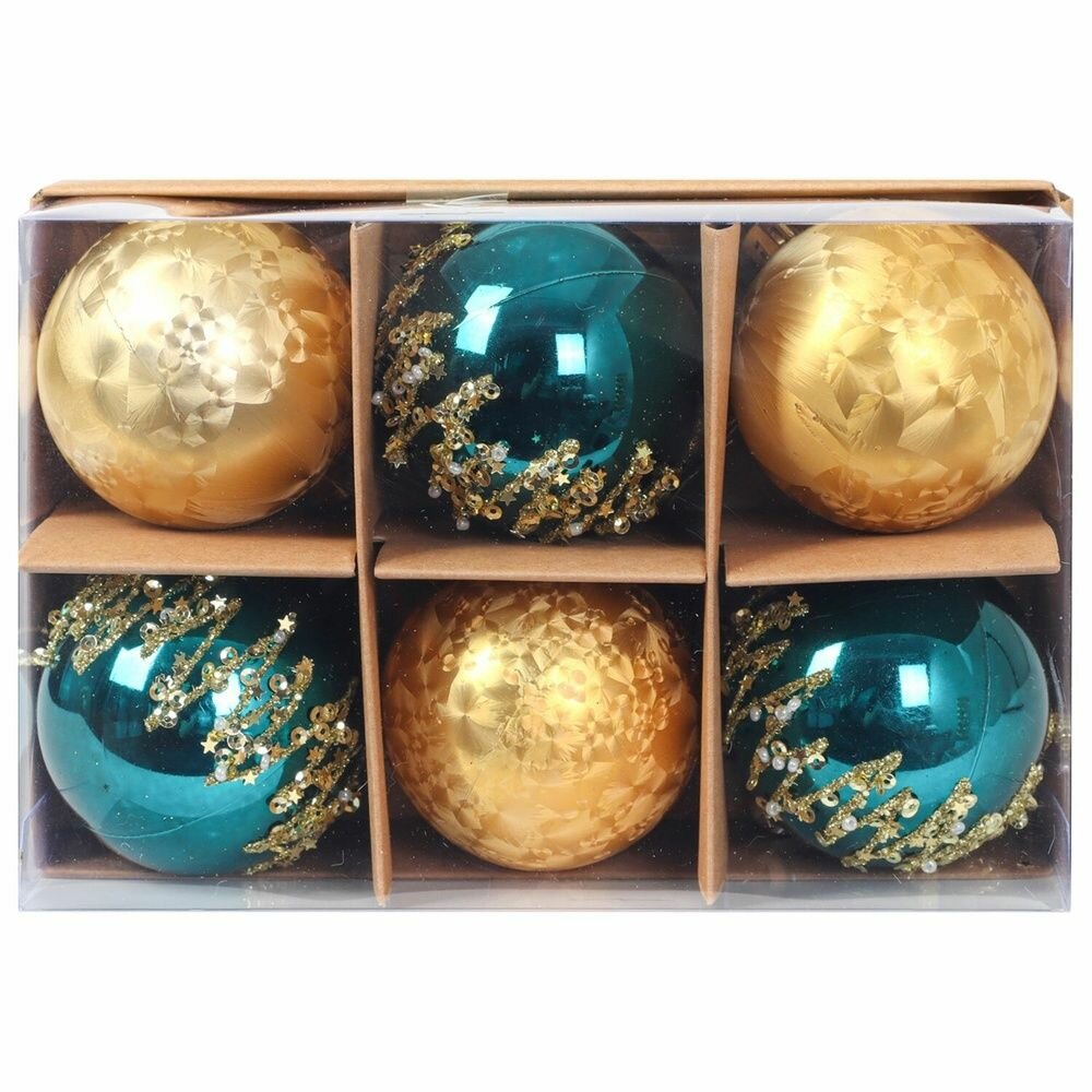 Купить Шары елочные Золотая сказка 6 шт, 6 см «Powder Blue» бирюзовый, золото, пластик (592178) с доставкой по всей России.
