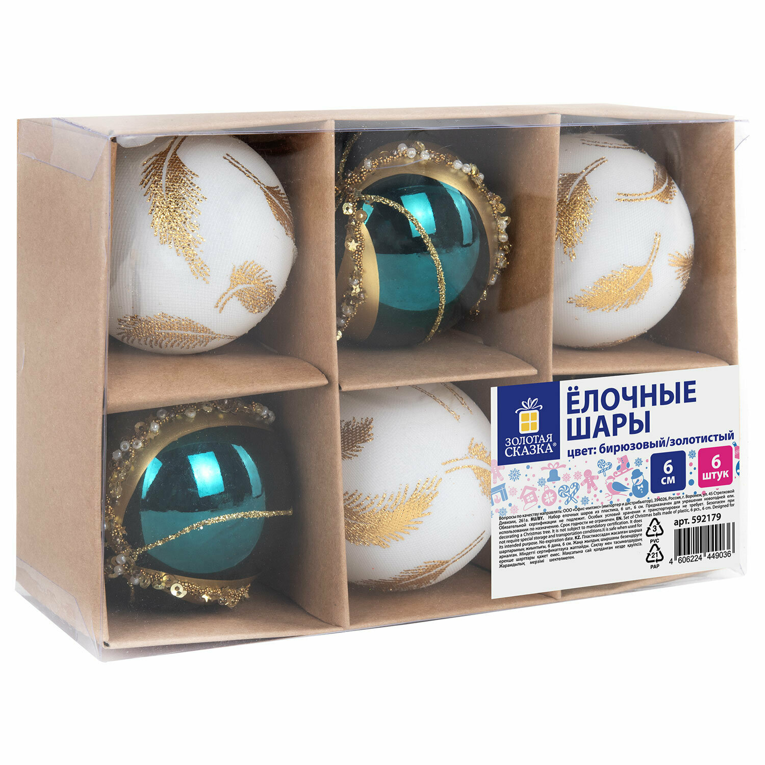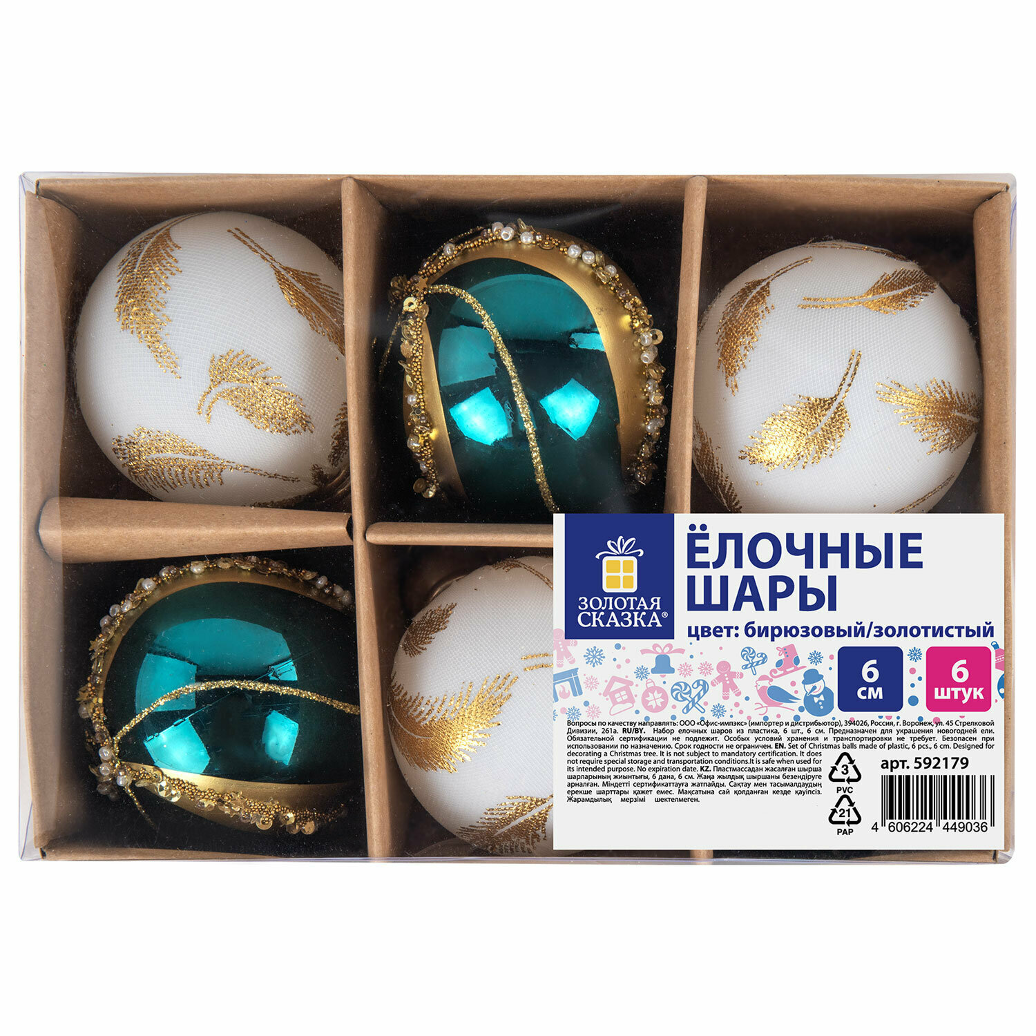 Шары ёлочные 6 шт, 6 см, «Peacock», пластик, бирюзовый/золото, золотая сказка, 592179: сравнение цен, характеристики, фото, актуальное наличие и цены.