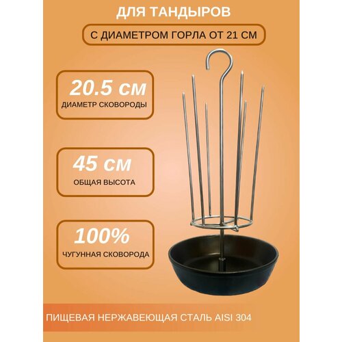 Подходит для тандыров с диаметром горла от 21 см, и глубиной от 45 см.